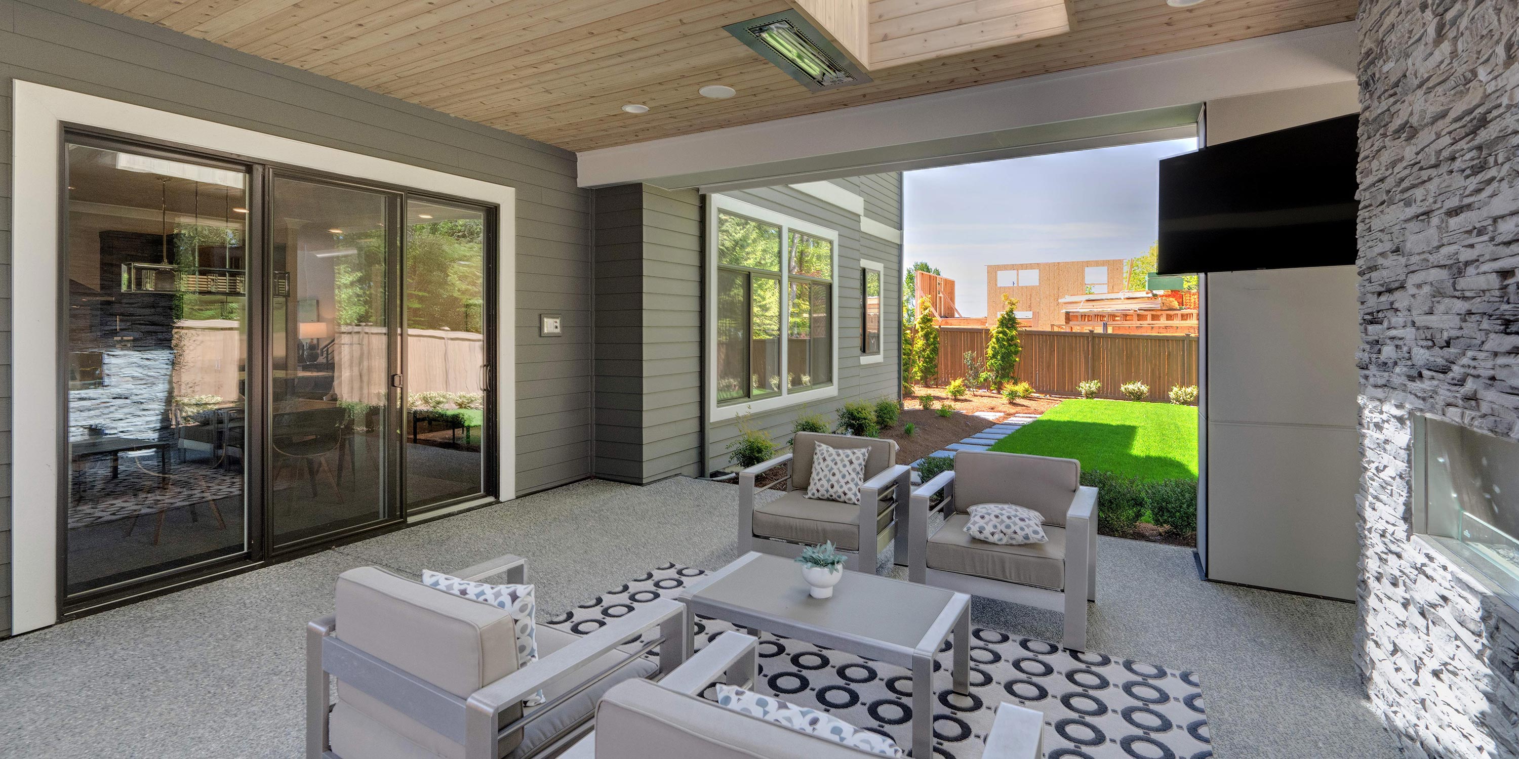 Unleash the true potential of your outdoor spaces with a covered porch featuring intuitive lighting, high-performance audio, ultra-bright displays and a fireplace for the ultimate escape.